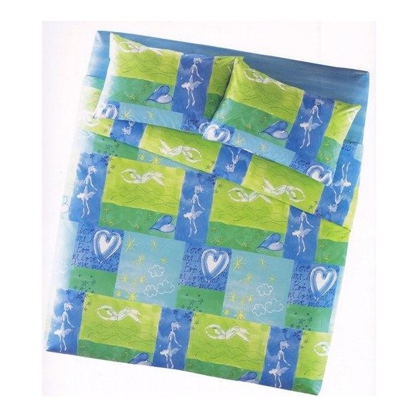 Completo copripiumone matrimoniale collezione BRIO fantasia Lovemania con federa double face e lenzuolo sotto con angoli. Disponibile nel colore CELESTE e FUXIA.