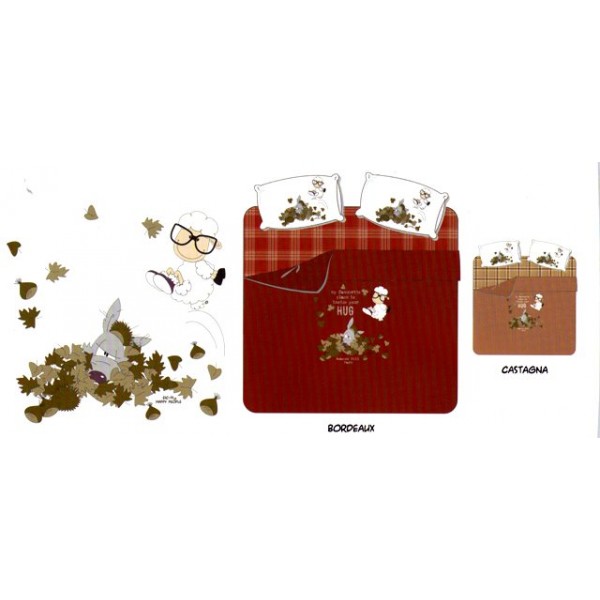 Completo copripiumone piazza e mezzo collezione Happy People fantasia RICCIO. Completo composto da sacco copripiumone cm 210x200 + pattella cm 40, lenzuolo sotto cm 130x200, 1 federa 50x80. In cotone 100% Percalle 70 fili cm2. Prodotto MADE IN ITALY.