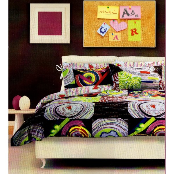 Completo copripiumino piazza e mezzo "Via Roma 60' fantasia POWER in tessuto di puro cotone Percalle 180 fili, composto da sacco copripiumone cm 200x210, lenzuolo sotto cm 130x200, 2 federe cm 50x80. MADE IN ITALY.