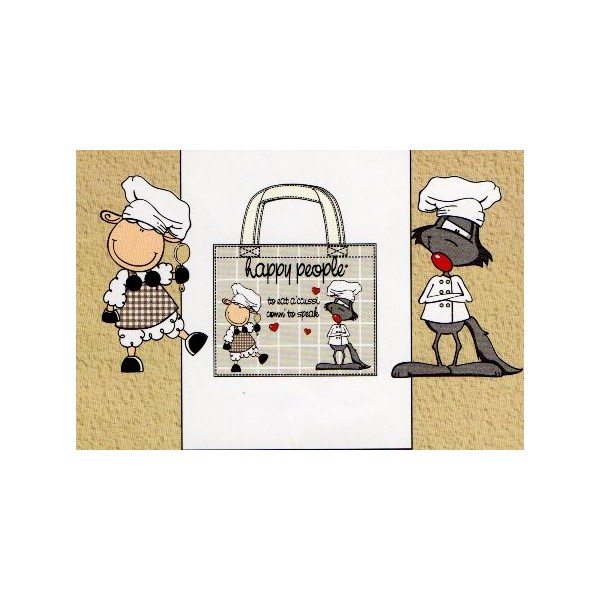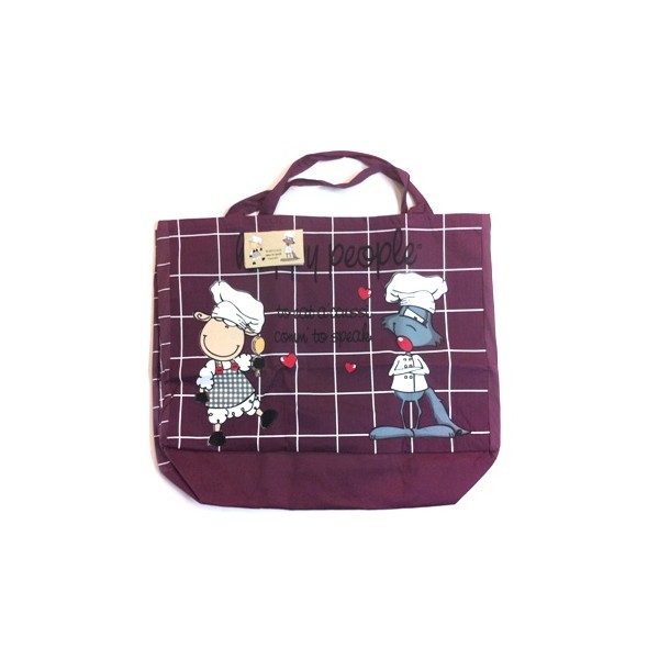 Shopper Bag Happy People Collezione Lupo e Pecora. Dimensione cm 55x45x15 in puro cotone 100%.